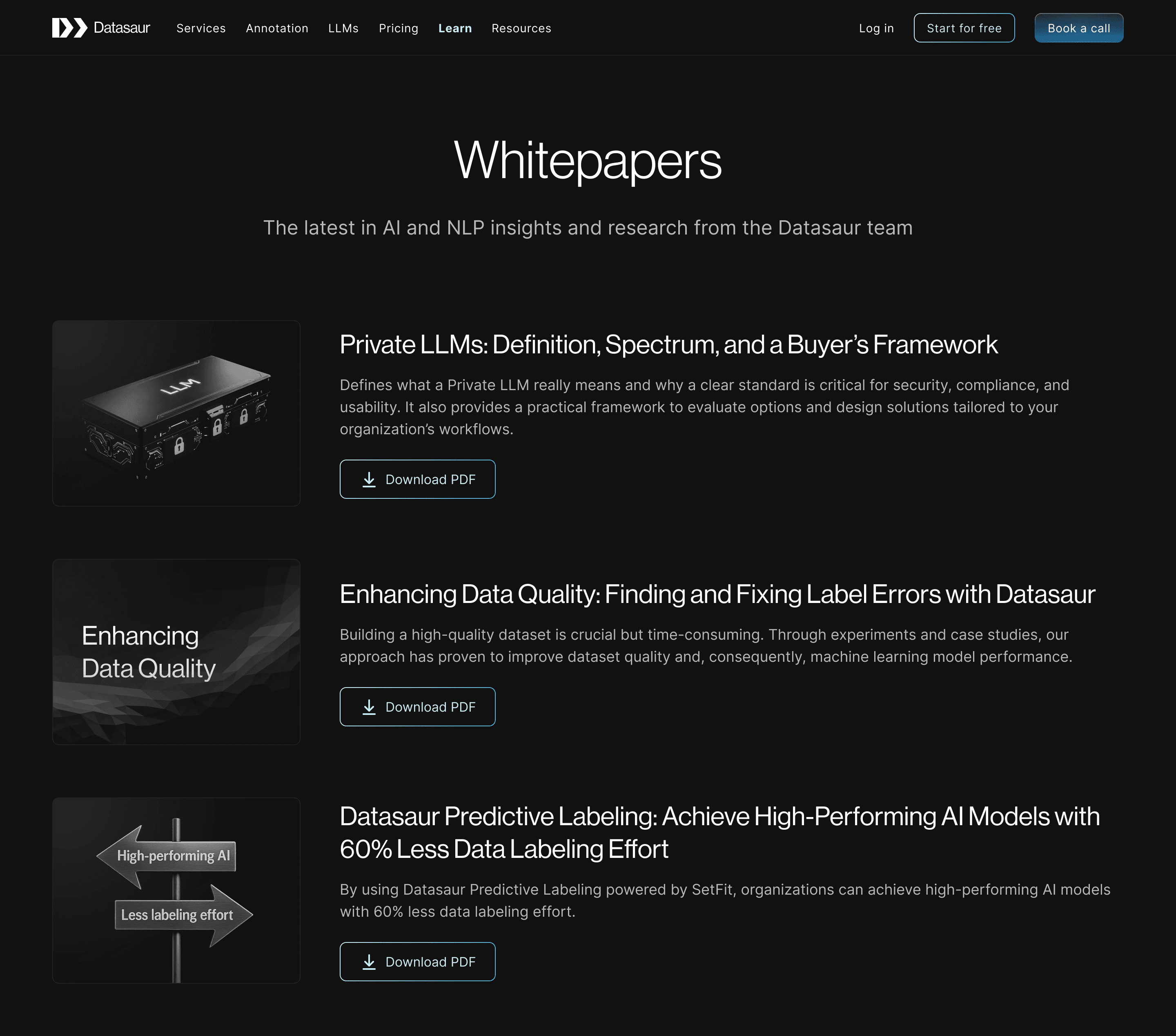 In mid-2024, Datasaur evolved from its playful dinosaur branding to a more refined visual identity; introducing a new logo, color palette, and tone aimed at establishing a more professional presence. This shift impacted nearly every visual touchpoint, especially the company website, which serves as its public face. I led the rollout of these brand updates across the organization, starting with a full revamp of the website to align with the new direction.