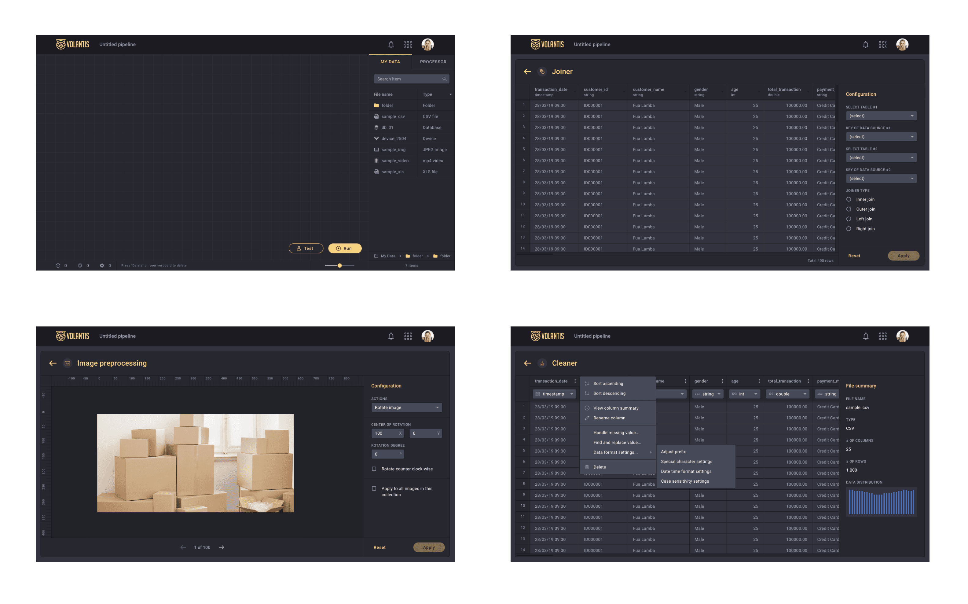 Volantis Data Pipeline was created to simplify the entire data processing workflow, from cleaning raw data and applying processors to training machine learning models. I developed user flows, sketches, and mockups, delivering the first version within two days and iterating with the Product Owner to fill missing flows. When ML Studio was merged into Data Pipeline, I redesigned user flows, sketched new concepts, and collaborated closely with stakeholders and engineering leads to align features with technical feasibility. The project ultimately delivered a more complete, integrated solution that streamlined data processing and expanded capabilities beyond the original ML Studio.